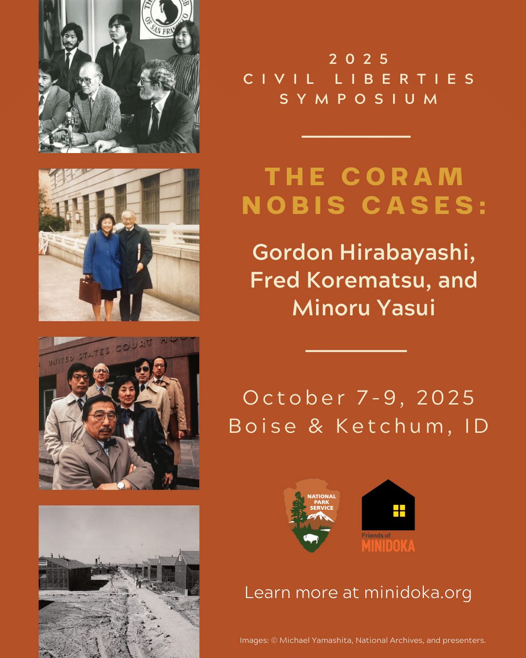 Join Friends of Minidoka, Minidoka National Historic Site, and community partners for the 2025 Civil Liberties Symposium, The Coram Nobis Cases: Gordon Hirabayashi, Fred Korematsu, and Minoru Yasui.