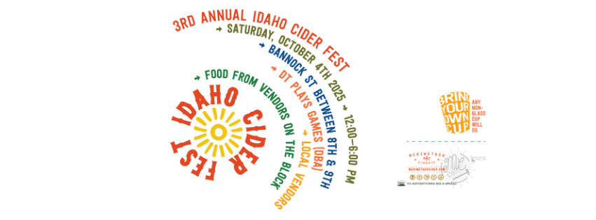 Block Party on Bannock St from 8th to 9th Streets in Downtown Boise! This event is all ages and free to attend! If you want to partake in any of the handcrafted ciders just buy a token (or pre-buy them!) and enjoy! Tokens are only $3 for a 4oz pour (there is a discount for pre-bought tokens!) ~ Cideries from Idaho, Washington, Oregon, Colorado, & Montana! ~ 2 local breweries ~ Booths from local vendors ~ Food from 10 Barrel Brewing and Funky Taco ~ Fun and games provided by Downtown Boise Association’s DT Plays BRING YOUR OWN CUP or buy a Festival cup available on-site or for a discount on pre-sales. PRE-BUY YOUR TOKENS AT https://square.link/u/UTcJz0dz