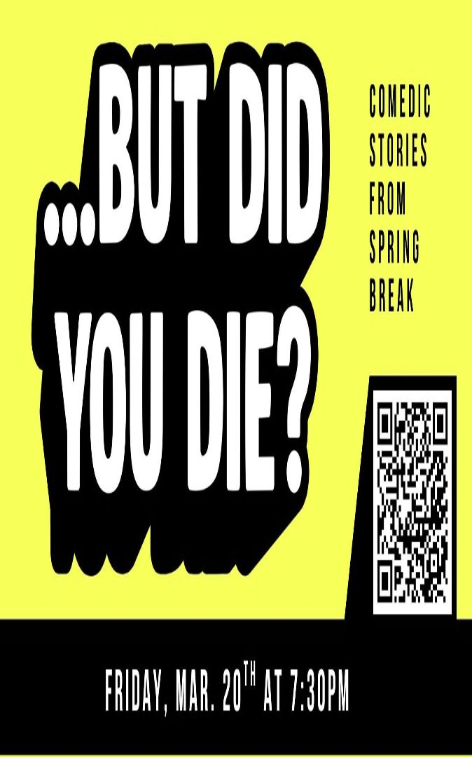Spring break energy has a funny way of turning ordinary plans into legendary stories. From half-cooked hijinx to DIY gone awry, this night of storytelling and improv celebrates the trips, mishaps, and unexpected adventures that become the stories you tell forever. Because sometimes the best memories start with a questionable plan-and end with someone saying, “Yeah… but did you die?”