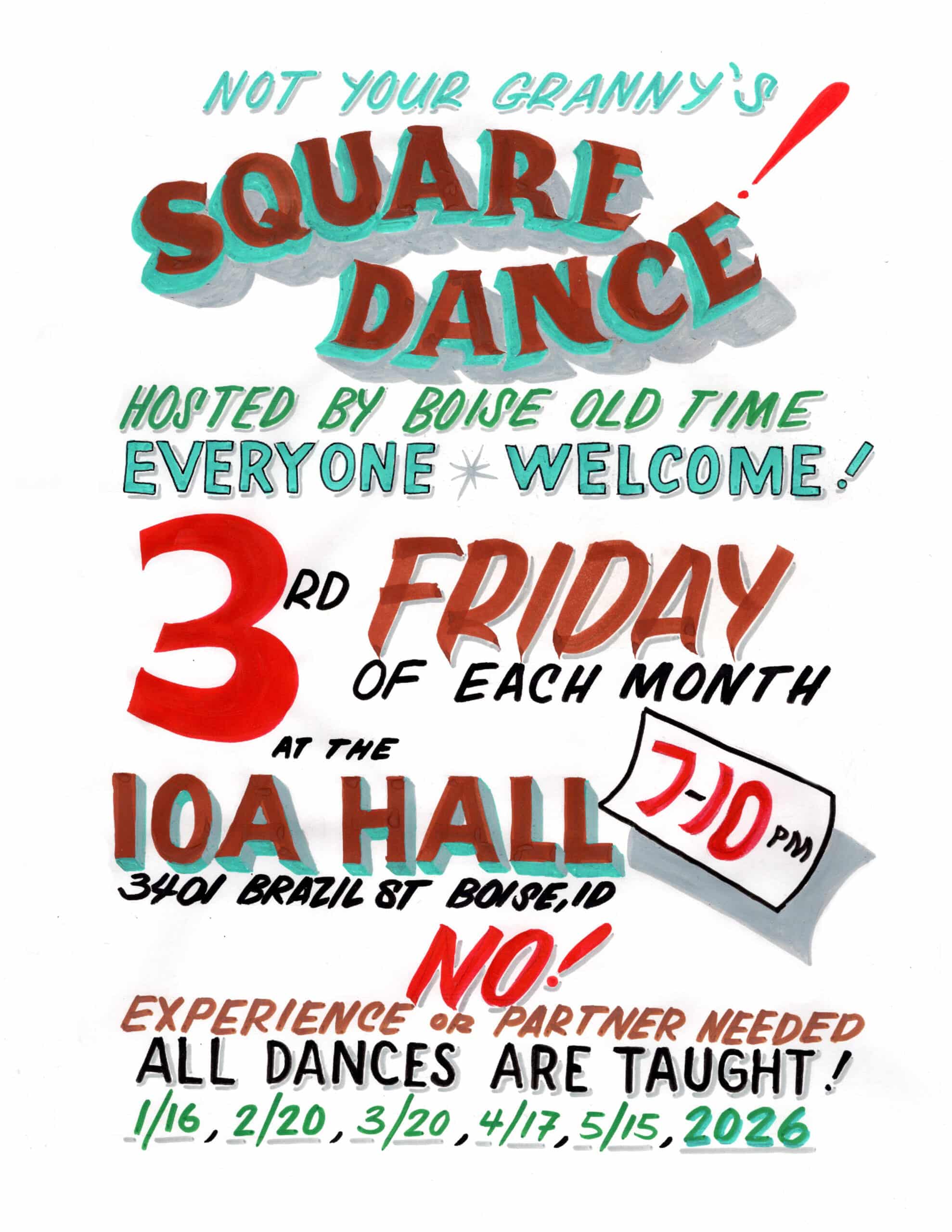 Get ready for our monthly Square Dance party! High energy music by Acrasians. Join our event where country charm meets modern rhythm. You’ve never square danced like this before. All ages and abilities, beginner friendly. All dances are taught by fun, helpful callers just before each dance. No experience, costume, or partner required. We’re flipping the script on square dance. Think community, connection, and killer tunes! Join us for Boise Old Time Square Dance.