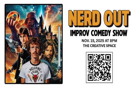 Step into the ultimate playground for all things nerdy with Nerd Out, a long-form improv comedy show where the things we obsess over come to life! From the classic movies that shaped us to the toys that sparked our imagination, from the sci-fi fantasies that kept us up late at night to the stories that still give us chills-this show is all about the things that make us nerd out.