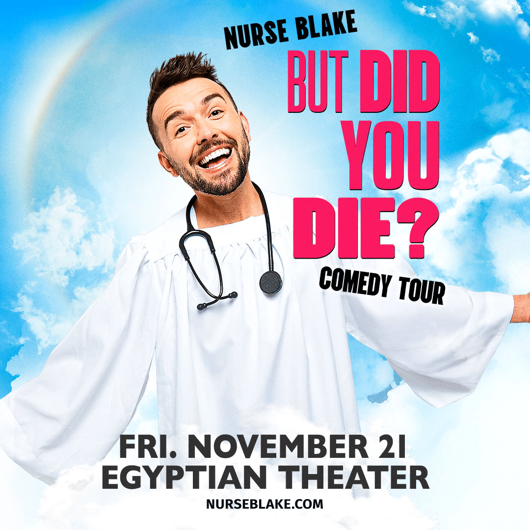 Nurse Blake is back with his hilarious new comedy tour with all new content, diving into the wildest things patients and their families say and do. From self-diagnosing Stage 8 Cancer with WebMD to hitting the call light like they are on a game show, nothing is off-limits!