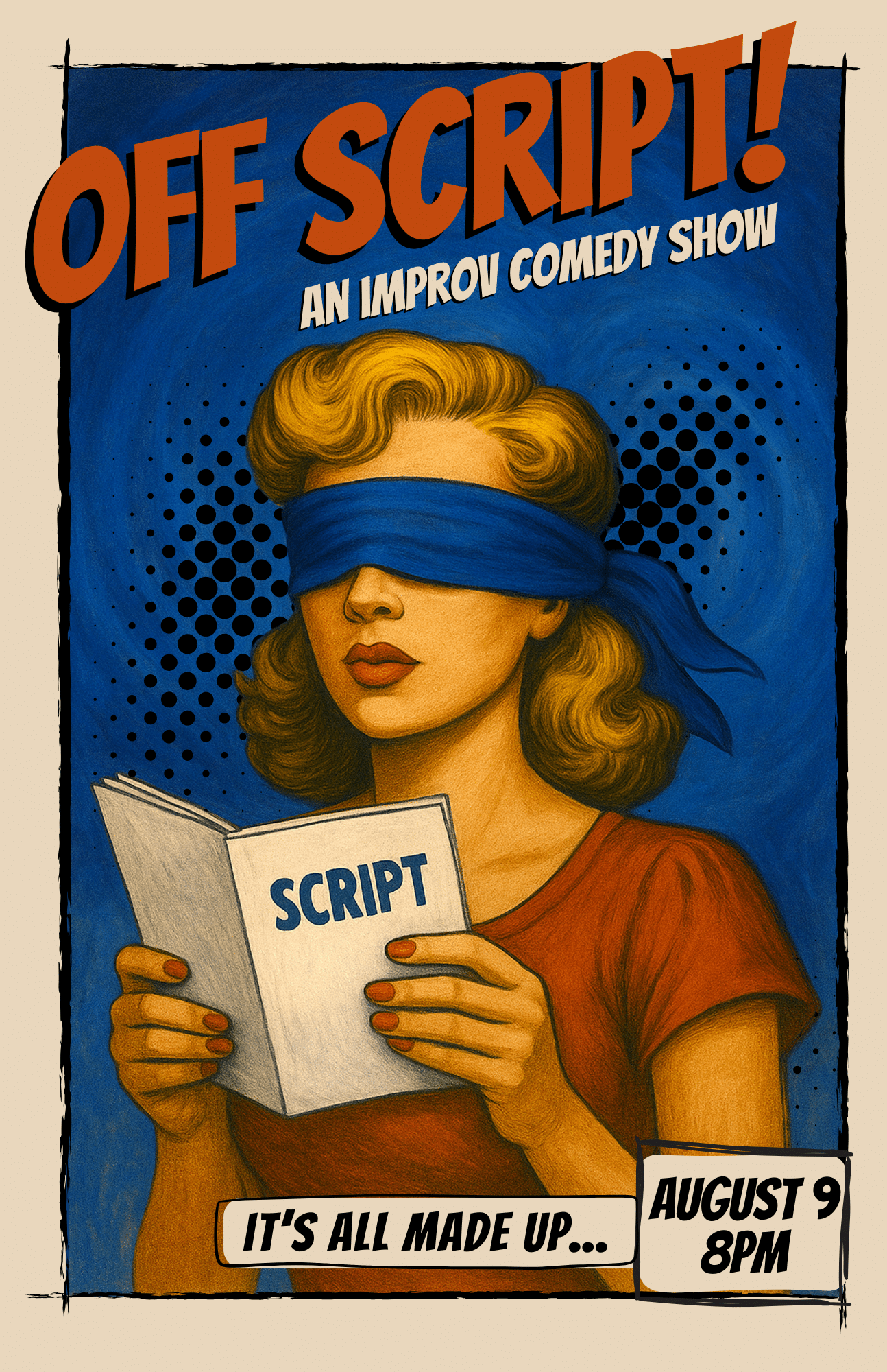Off Script! is an unscripted, unpredictable, and wildly entertaining improv comedy show where you help shape the night. With nothing but audience suggestions and their quick wit, the performers create hilarious scenes, characters, and moments — all made up on the spot. No scripts. No safety nets. Just fast-paced, laugh-out-loud comedy that’s never the same twice.