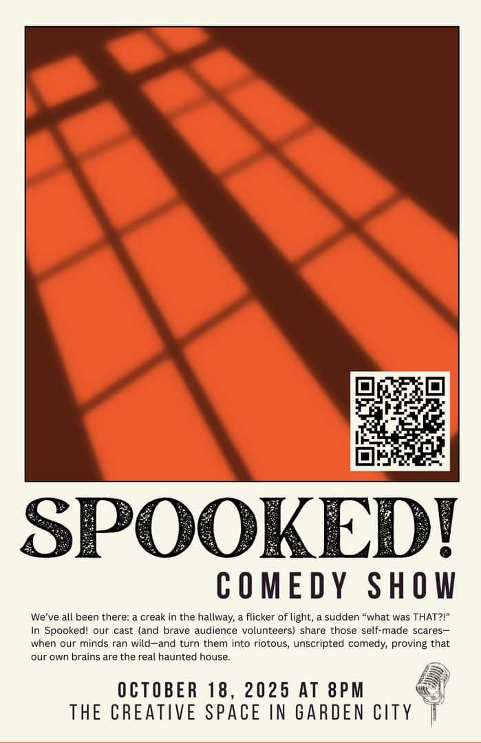 We’ve all been there: a creak in the hallway, a flicker of light, a sudden “what was THAT?!” In Spooked! our cast (and brave audience volunteers) share those self-made scares-when our minds ran wild-and turn them into riotous, unscripted comedy, proving that our own brains are the real haunted house.
