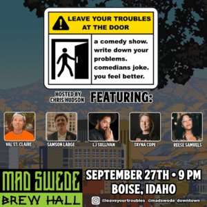 Chris Hudson is a Baltimore-born, Portland-based comedian who has performed in clubs in D.C. at Comedy Loft; Los Angeles at The Comedy Store; Philly and beyond. All while accompanied by his current facial hair configuration. He was in HBO’s Veep in the role of Campaign Staffer. His jokes have been featured in The Washington Post, Playboy, Funny Or Die, Paste Magazine and HuffPost. He opened for Shane Gillis, Stavros Halkias, Kyle Kinane, Ariel Elias, Nick Mullen and more. He also appeared at The D.C. Comedy Festival, Rip City Comedy Festival, and Artscape. Chris currently hosts Leave Your Troubles at The Door a completely improvised stand-up comedy showcase, created by him in 2019. Comedians riff jokes using audience problems anonymously submitted before the show. You can catch Leave Your Troubles at the Door monthly in Portland, Oregon and Seattle, Washington. Leave Your Troubles also travels to new locations and cities almost every month. See it here at Mad Swede Brew Hall Saturday, September 27th!
