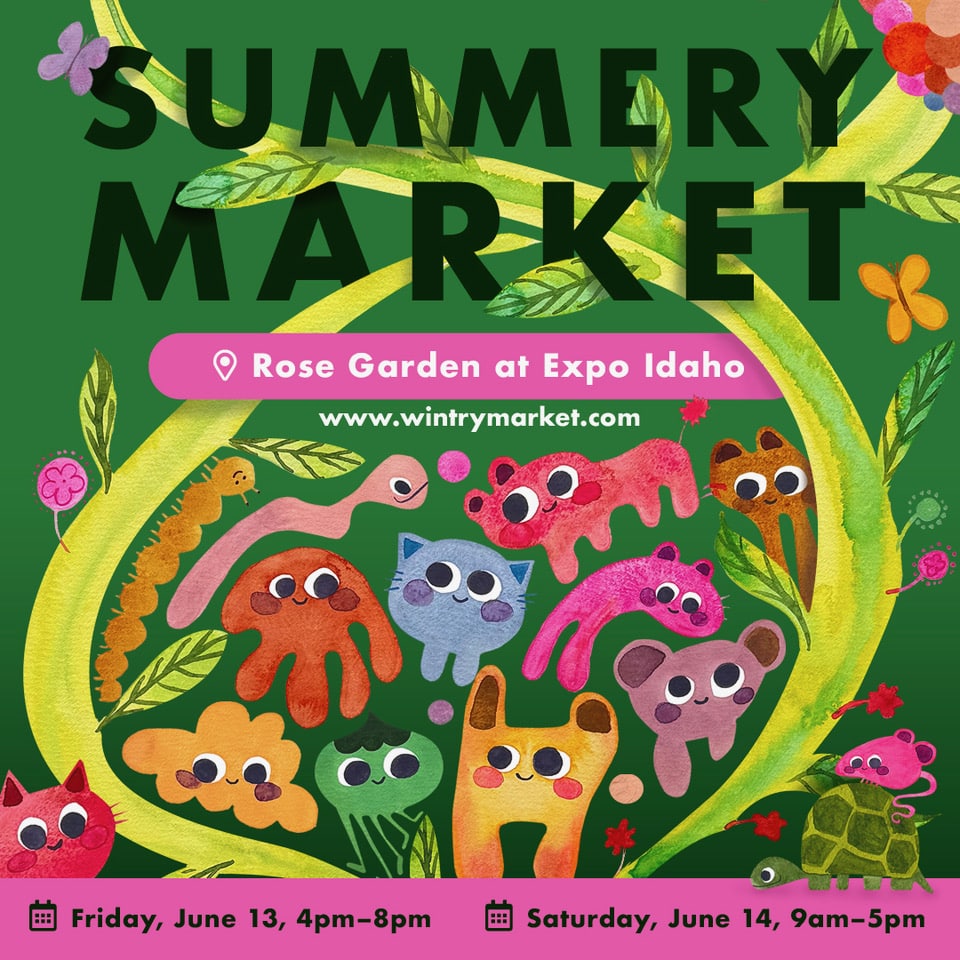 Summery Market 2025 will be held on Friday June 13th from 4-8pm and Saturday June 14th from 9am-5pm outdoors in the Rose Garden at the Expo Idaho (the fairgrounds).
