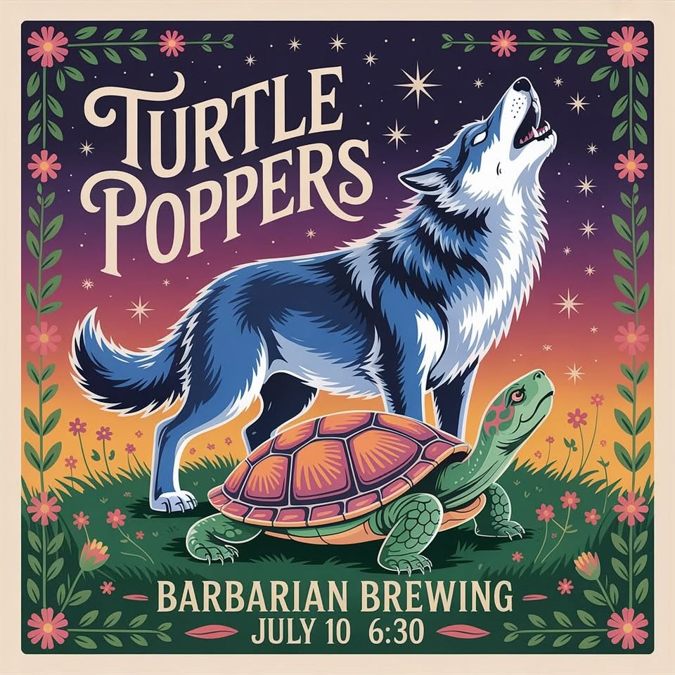 Turtle Poppers bring their infectious high energy bluegrass and improvised jams to Barbarian Brewing for a Thursday Evening Get Down!
