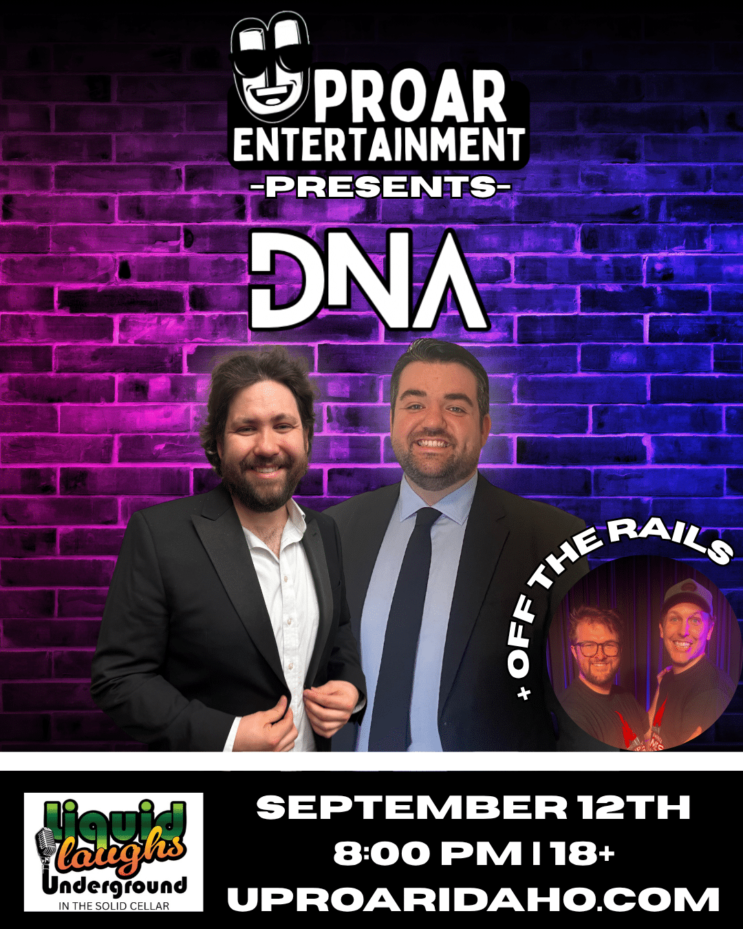 Headlining the show is DNA, a high-energy duo starring Boise’s own Daniel Maggard and Andrew Lyman. They take everyday jobs — like florist, zookeeper, or fry cook — and drop them into fantastical settings filled with twists, turns, and total chaos. With razor-sharp timing and explosive chemistry, DNA crafts bold, hilarious stories you’ll only see once.