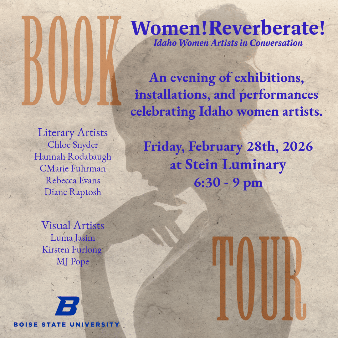 Featured writers include Diane Raptosh, a former Idaho Writer-in-Residence and National Book Award nominee; CMarie Fuhrman, a Pacific Northwest Book Award recipient; Rebecca Evans, a BSU alum and recipient of a Women Making History award; Hannah Rodabaugh, a BSU instructor and recipient of an ICA Literature Fellowship; and Chloe Bliss Snyder, an MFA student slated to publish her first poetry collection in 2026.